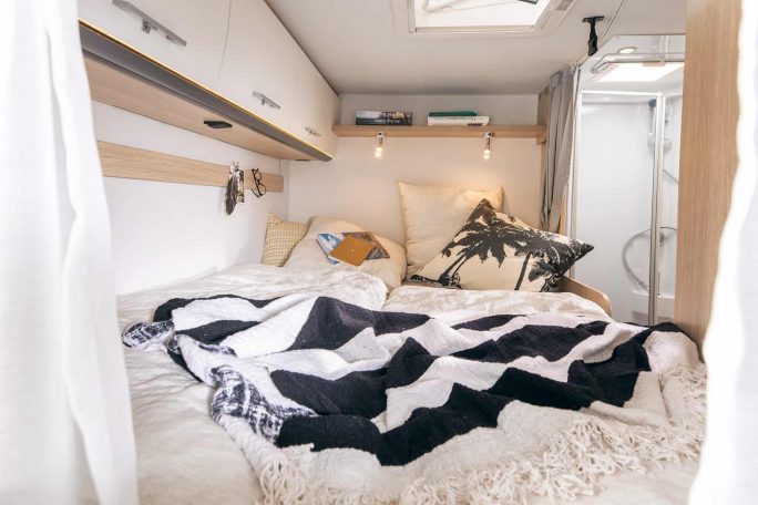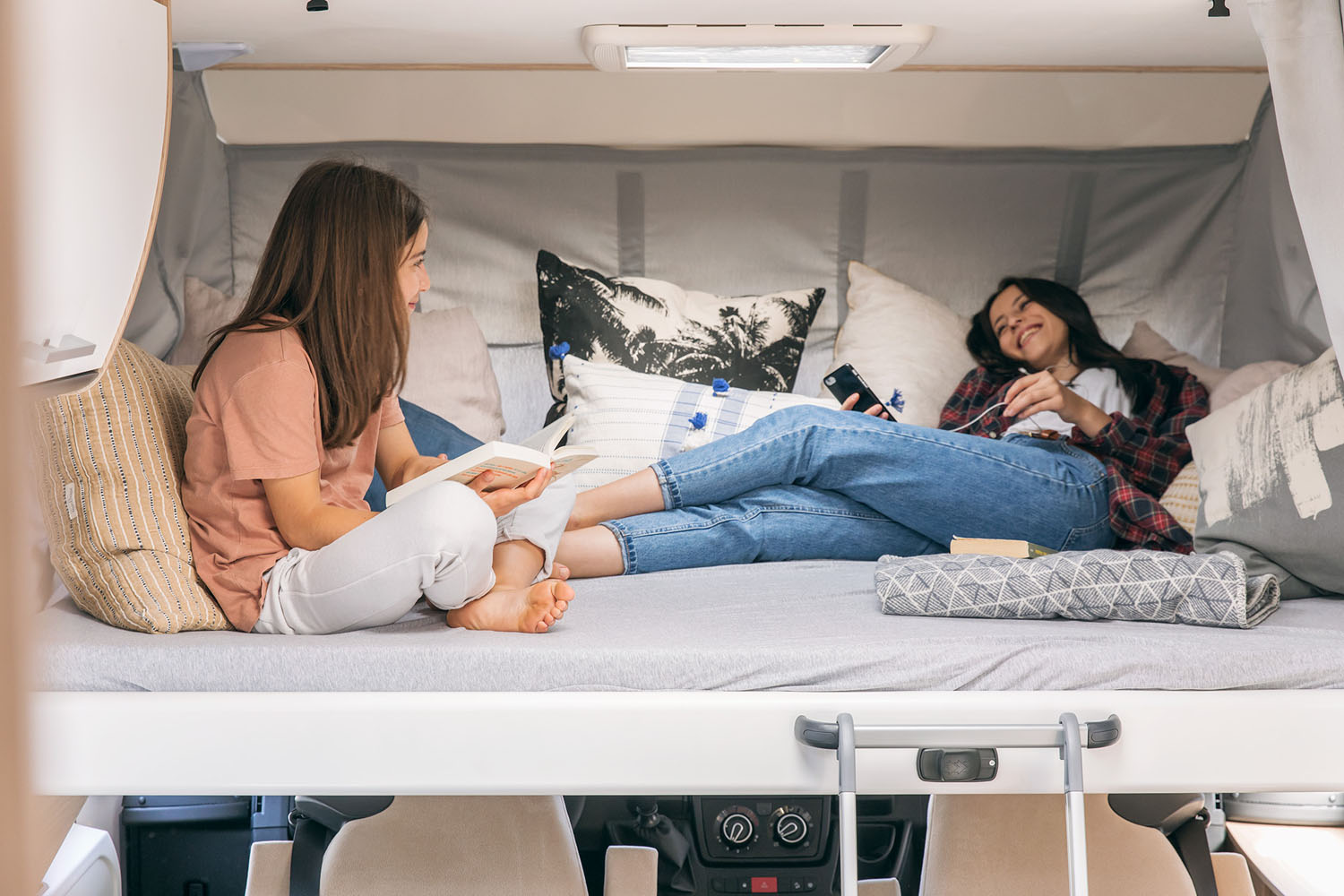 | Bed voorin (hefbed) | 1,95 m x 1,40 m /1,10 m (lengte x breedte) |