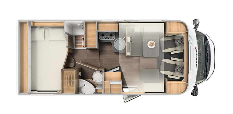 | Let op | Bij McRent huurt u een camper in de categorie EcoLine 4. Een specifieke indeling is niet gegarandeerd. |