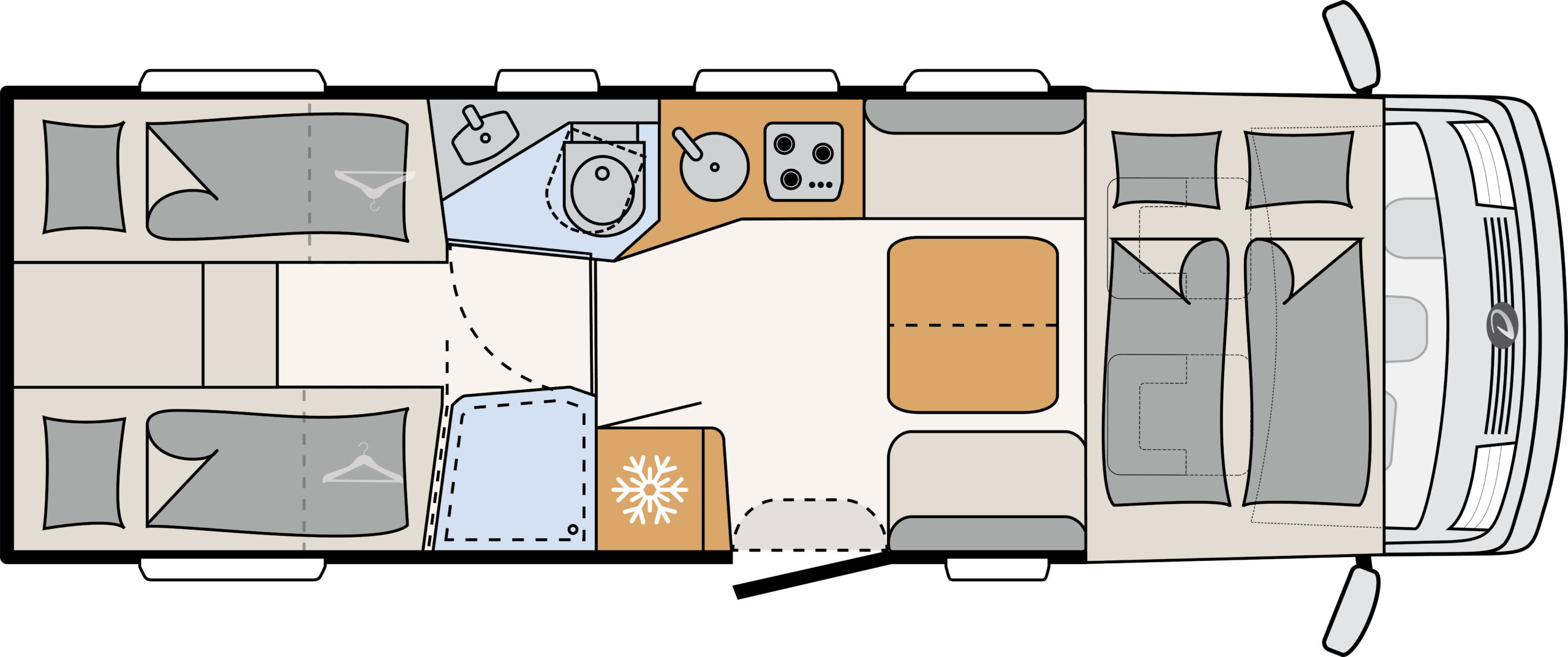 | Let op | Bij McRent huurt u een camper in de categorie Premium Standard. Een specifieke indeling is niet gegarandeerd. Voor deze camper heeft u een C rijbewijs nodig. |