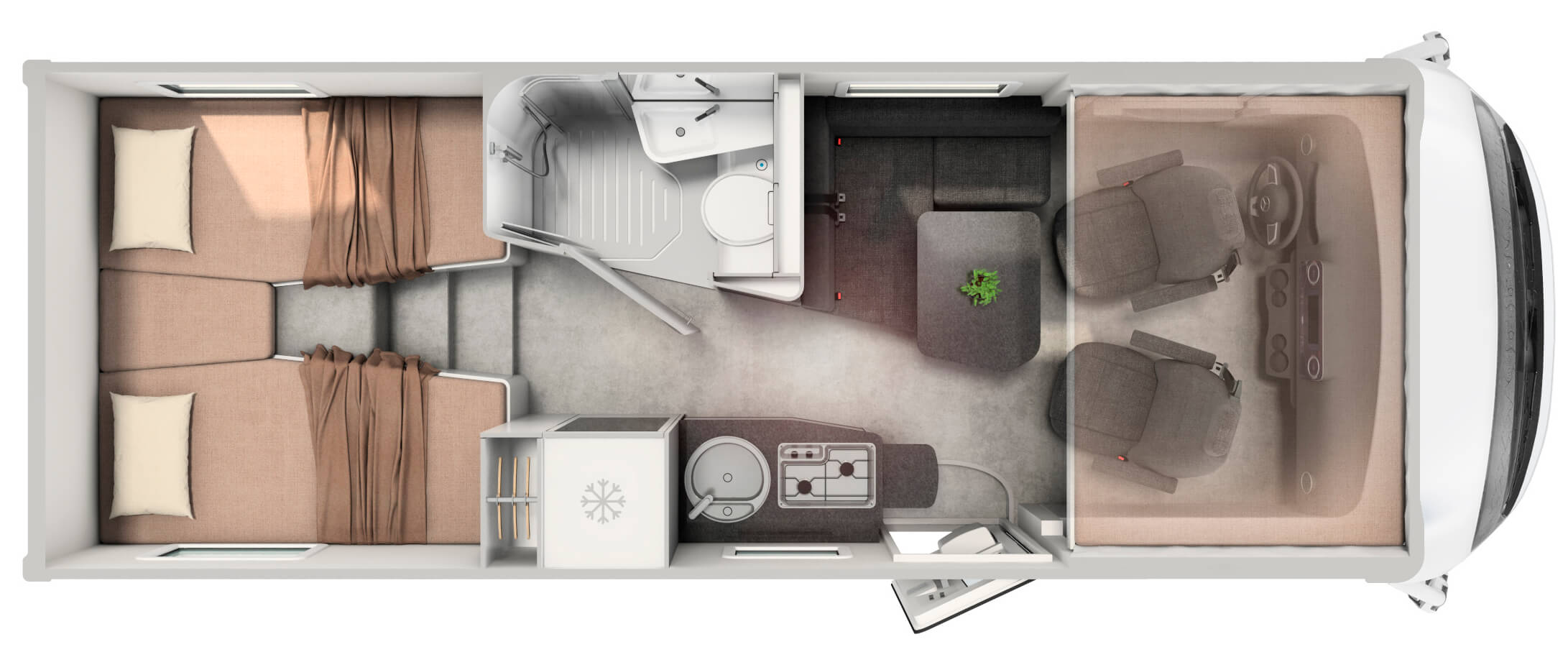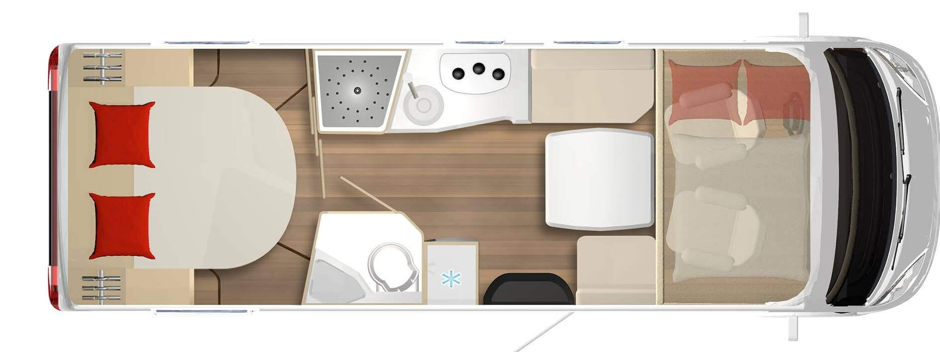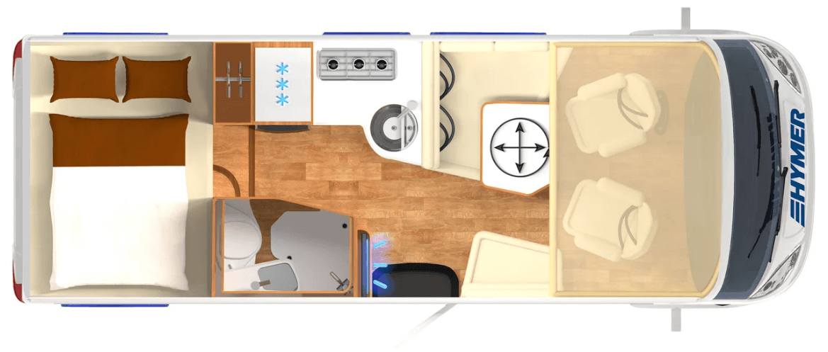 | Bed voorin hefbed | 1,94 m x 1,45 m (lengte x breedte) |