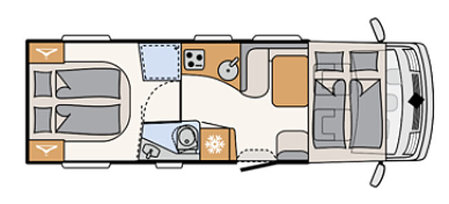 Deze gegevens zijn een indicatie van het voertuig. De (bed-)afmetingen kunnen afwijken van de hiernaast genoemde maten. Dit is afhankelijk van het bouwjaar en de beschikbaarheid. Wanneer blijkt dat de verhuurder wegens onvoorziene omstandigheden het gereserveerde campertype niet kan leveren, behoudt hij het recht voor deze te vervangen voor een vergelijkbaar of groter campertype. Eventuele extra kosten die hieruit voortvloeien, voor bijvoorbeeld brandstofverbruik, campingplaatsen, ferry overtocht e.d. komen niet in aanmerking voor restitutie en worden niet vergoed door de verhuurder en/of Campers Europa.