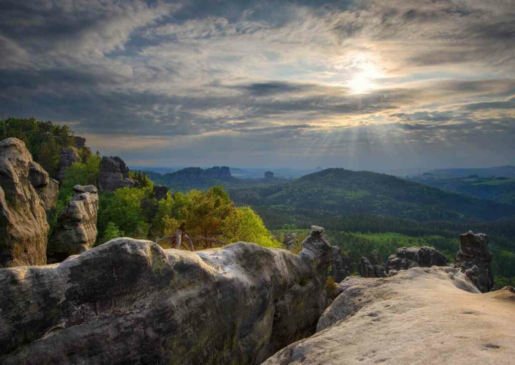 Een ander berggebied is Boheems Zwitserland, het Tsjechische deel van Saksisch Zwitserland. Dé bezienswaardigheid van Boheems Zwitserland is de Pravčická brána, de grootste rotsbrug in Europa. Je kunt de bergkloof en de rotsbrug combineren in een wandeling van 23 km.